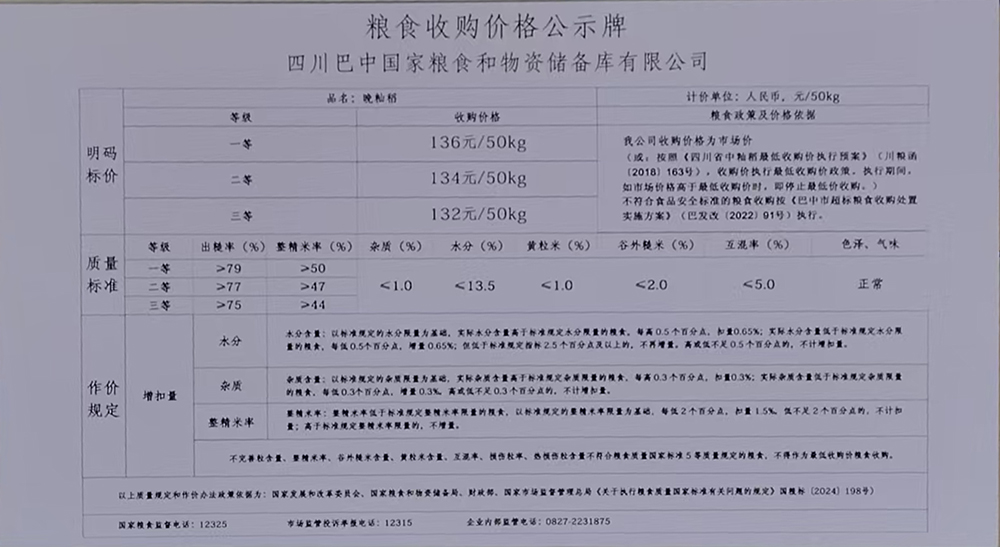 為認(rèn)真貫徹國(guó)家糧食收購(gòu)政策,全面落實(shí)省、市決策部署,踐行糧食安全黨政同責(zé)責(zé)任,充分發(fā)揮行業(yè)主體責(zé)任,做好秋糧收購(gòu)工作,切實(shí)保護(hù)種糧農(nóng)民利益。現(xiàn)將四川巴中國(guó)家糧食和物資儲(chǔ)備庫(kù)有限公司2025年秋糧收購(gòu)相關(guān)信息公示如下: